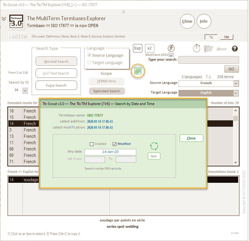 TIP: If you just imported a MultiTerm Termbase, by default all entries will have the same date and time in "Latest addition" and "Latest modification".