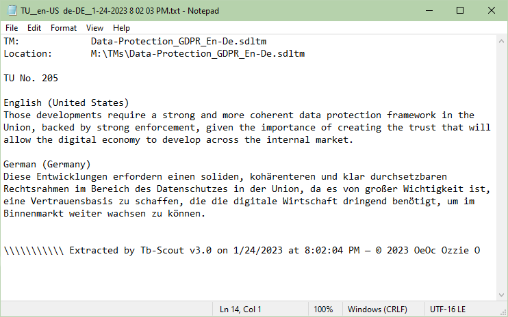 The translation unit is exported in text format, and the resulting file, shown in the example above, is named according to this convention: